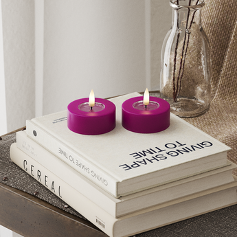 Този елегантен водещ Jumbo Life светлини в Виолетово Предлага ефект на „истински пламък“ в реалния живот, който е толкова жизнен, колкото истинска свещ. С височина 4,5 см и диаметър 6,1 см, всяка светодиодна светлина на фара Jumbo е внимателно изработена от свещи и смола, оборудвана с реалистичен 3D пламък и уникално покритие от смола в горната част. Тази конкретна комбинация не само създава автентично усещане, но също така придава отличителния „мокър вид“, който имитира перфектно разтопени свещи.