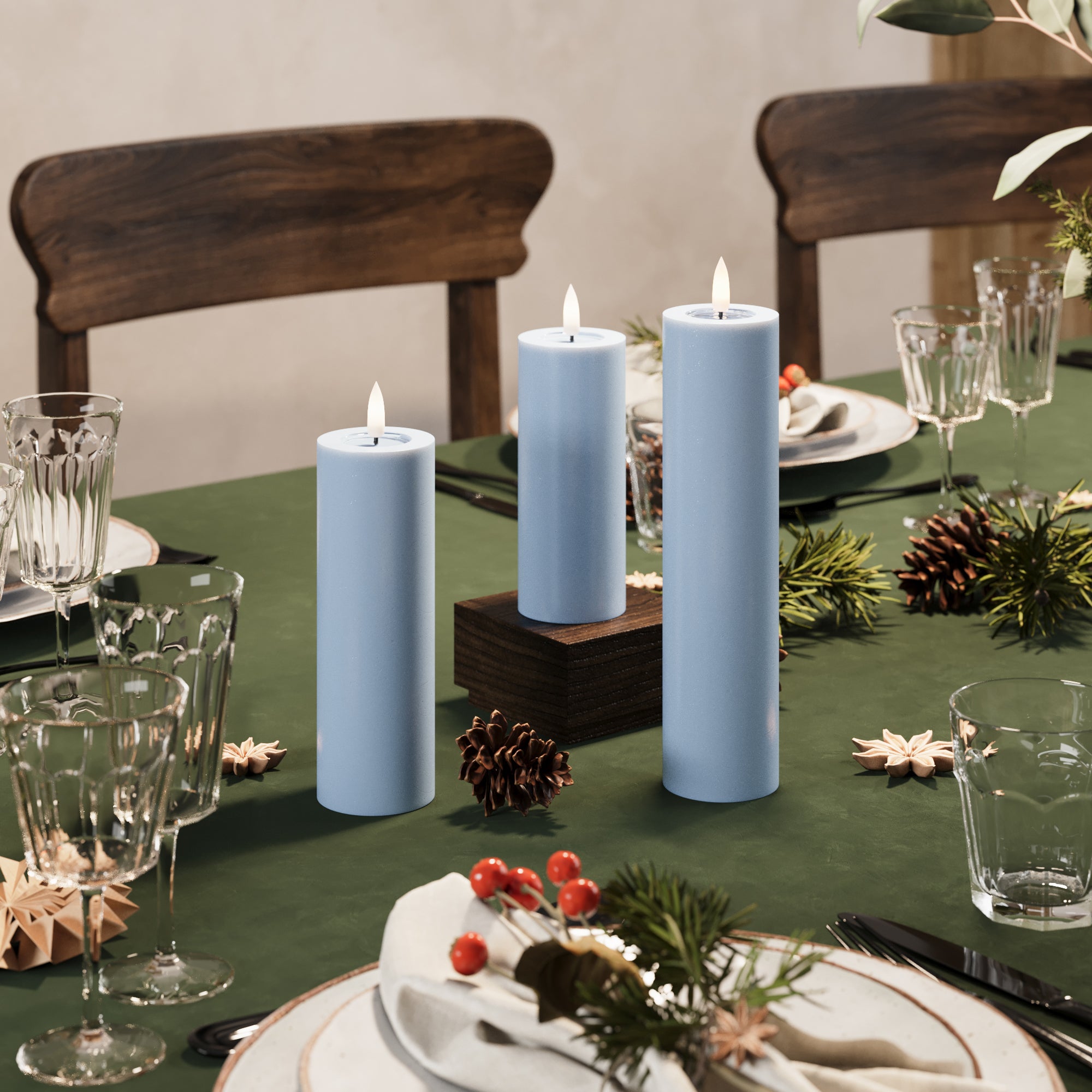 LED Stompkaarsen Ø 5 x 20 cm Ijsblauw - 4 pc's