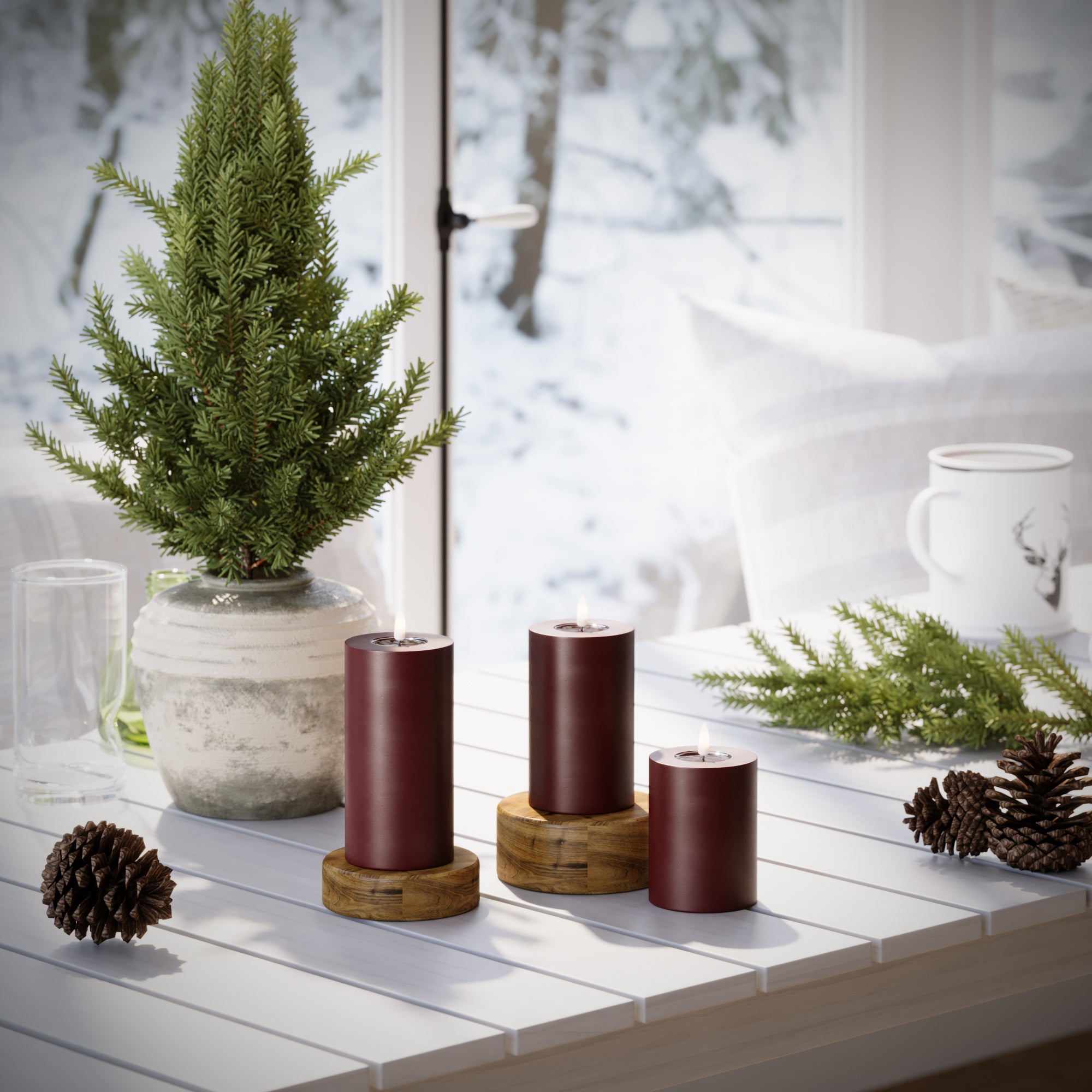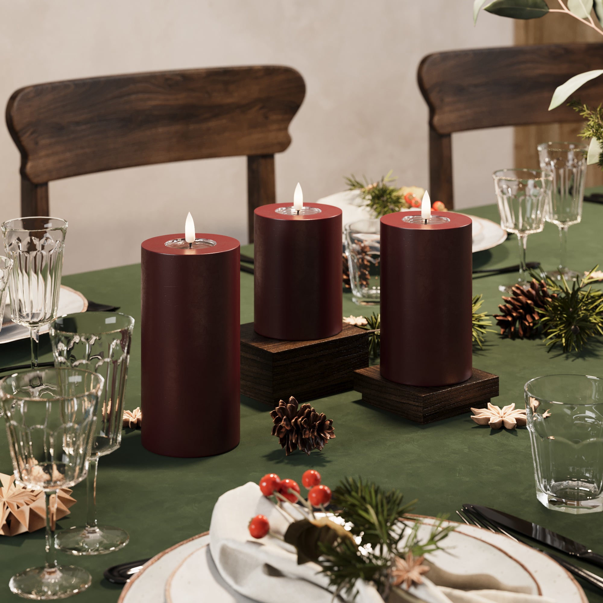 LED Stompkaarsen Ø 7,5 x 10 + 12,5 + 15 cm Bourgogne