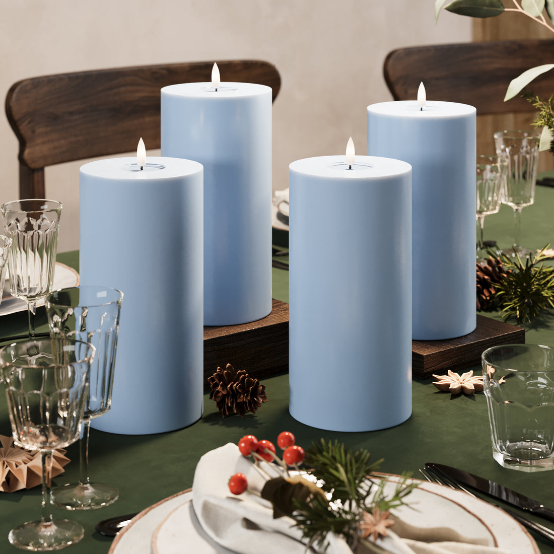 LED bloková světla Ø 10 x 20 cm Ledově modrá - 4 ks