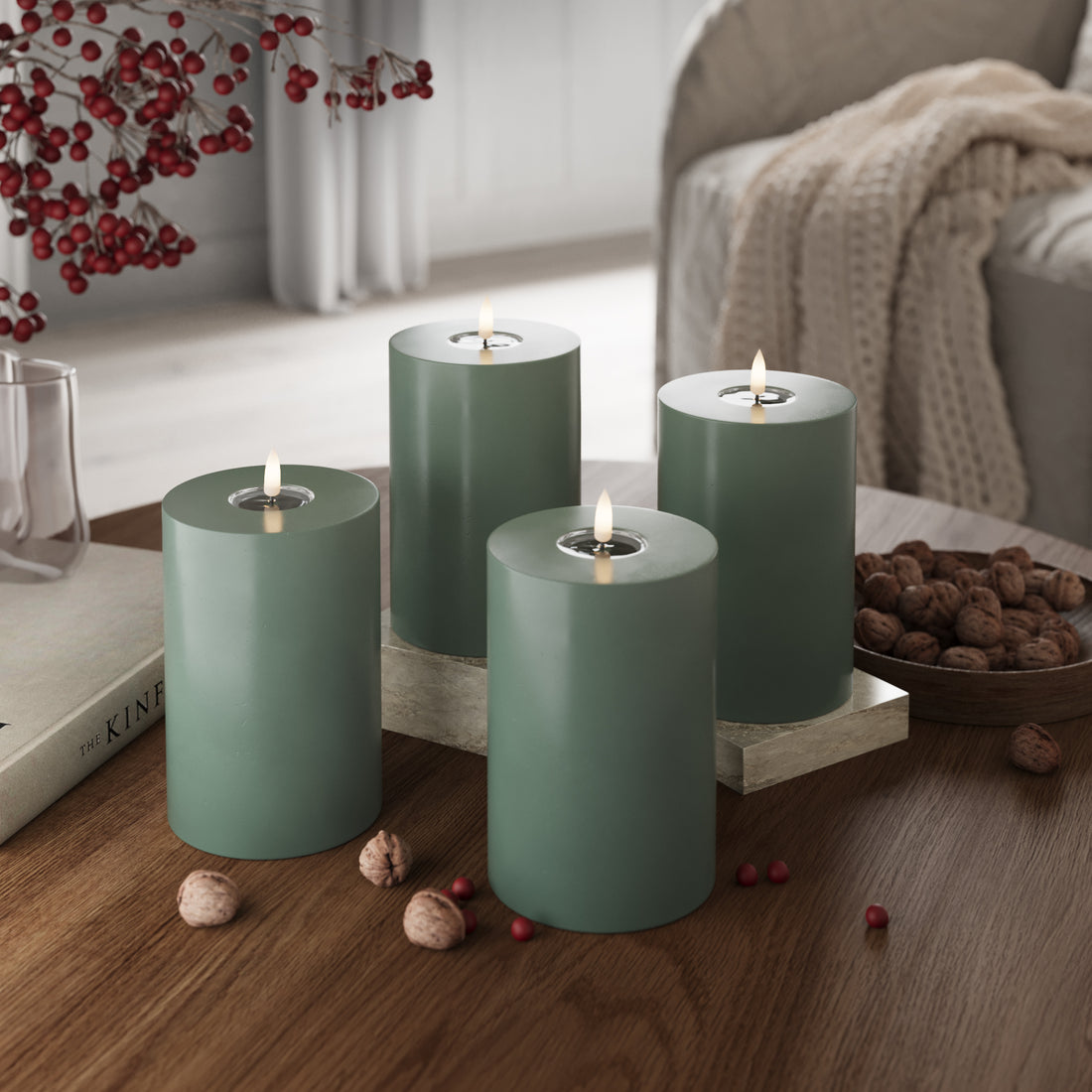 LED bloková světla Ø 10 x 15 cm Jadeitově zelená - 4 ks
