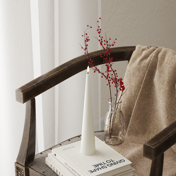 Dette smukke LED Keglelys i Hvid er skabt med vores særlige 3D Real Flame, der får det til at ligne et ægte stearinlys. Med en højde på 28 cm passer det perfekt ind i de fleste hjem, hvor det spreder hygge og varme med sit naturlige udseende.