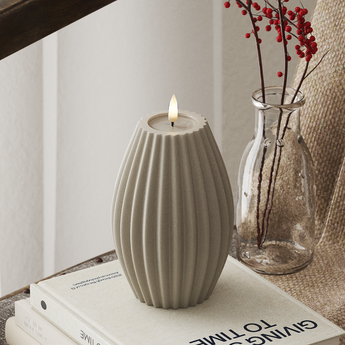Dette elegante LED rillelys i Sand tilbyder en virkelighedstro 'Real Flame'-effekt, der er så naturtro som et ægte stearinlys. Med en højde på 15 cm og en diameter på 10 cm er hvert LED rillelys omhyggeligt fremstillet i stearin & resin, udstyret med en livagtig 3D-flamme og en unik belægning af resin i toppen. Denne særlige kombination skaber ikke kun en autentisk følelse, men giver også det karakteristiske 'wet look', der efterligner smeltet stearin perfekt.