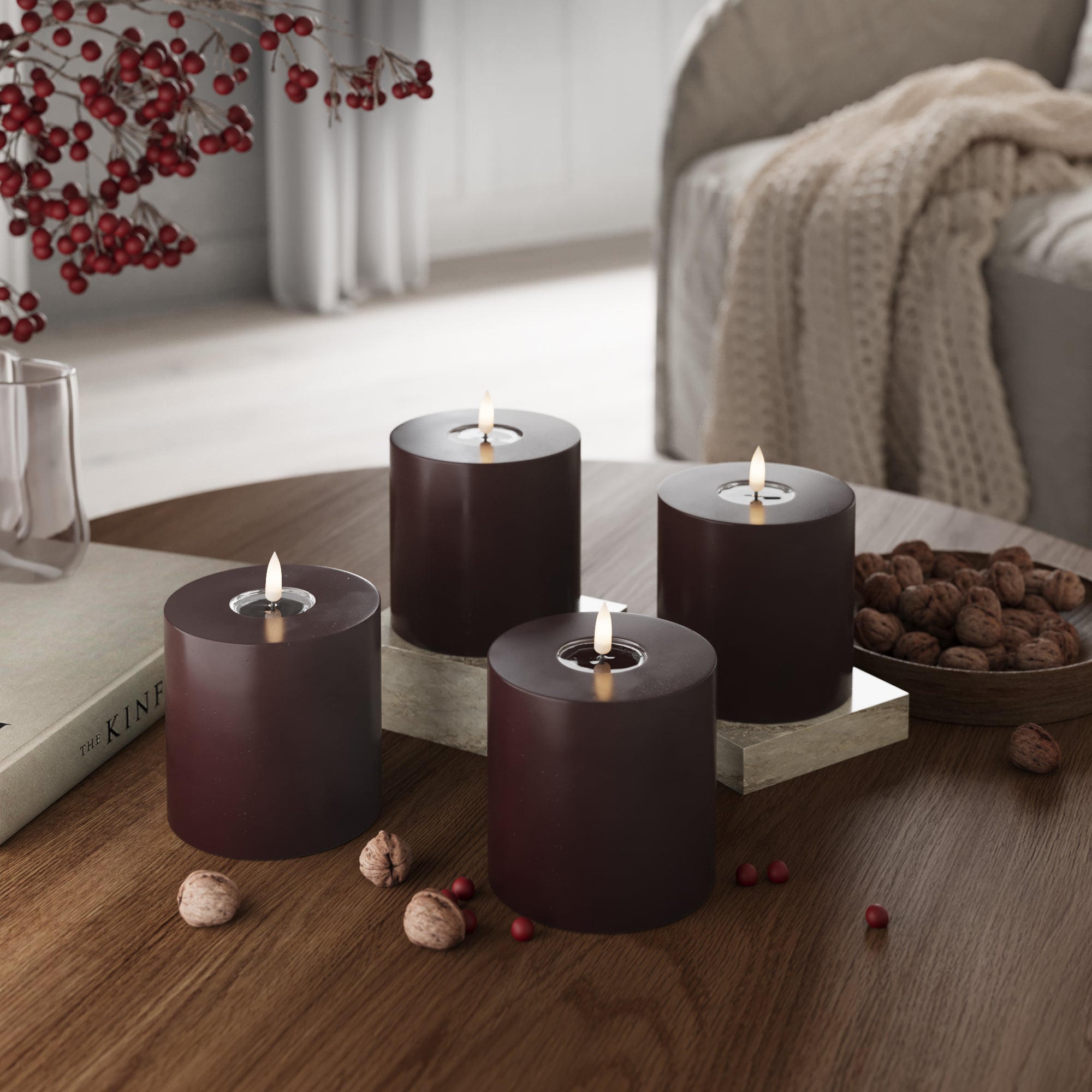 LED-Blockkerzen Ø 10 x 10 cm Burgunderrot – 4 Stück