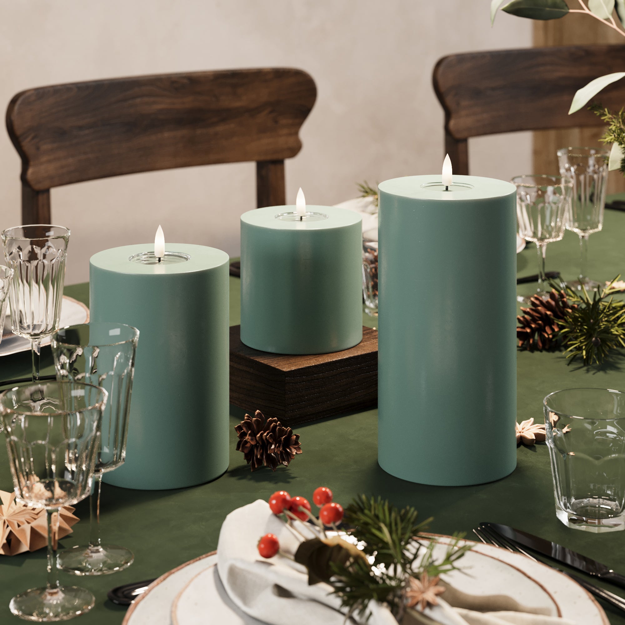 LED-Blockkerzen Ø 10 x 10 cm Jadegrün – 4 Stück