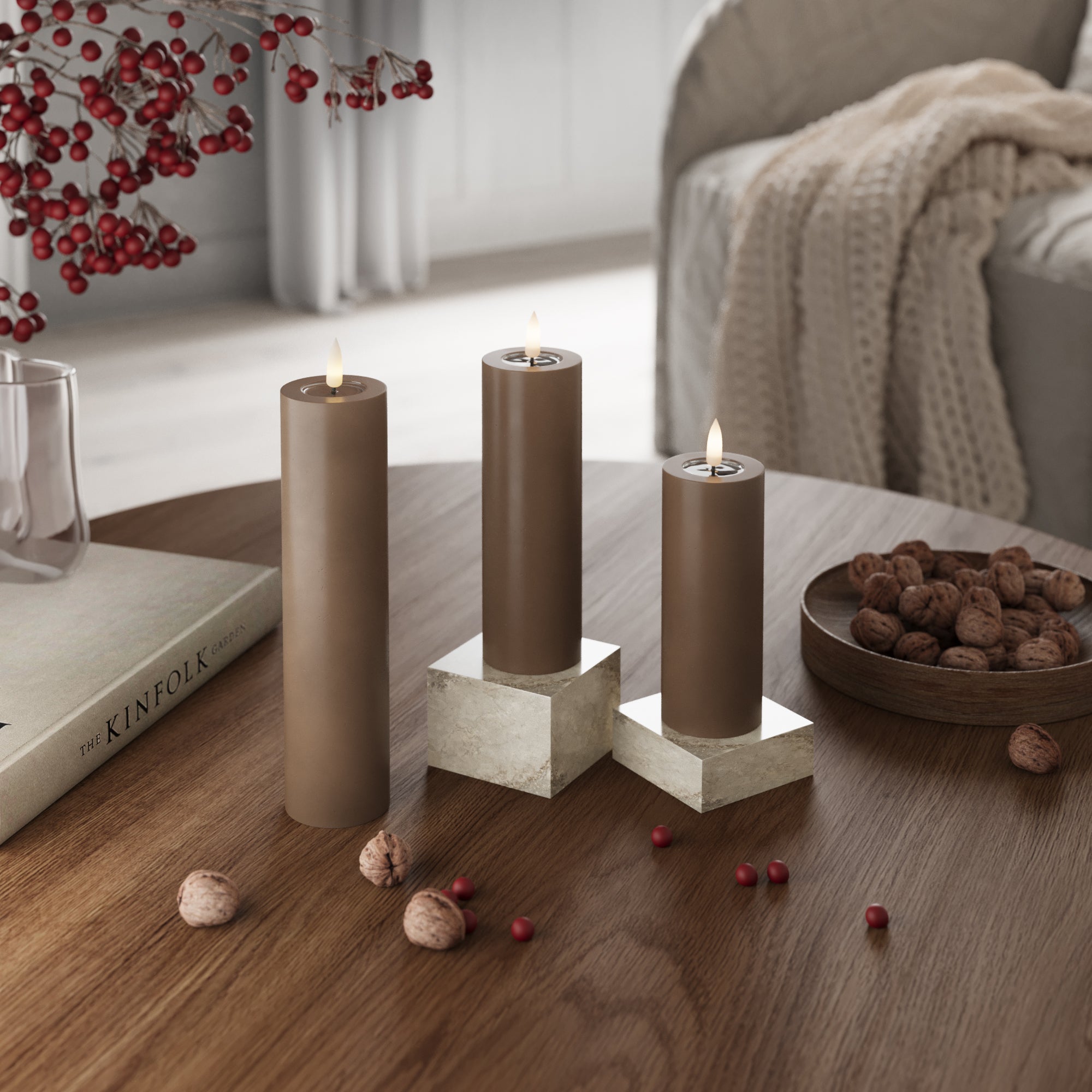 LED-Blockkerzen – Ø 5 x 12,5 + 15 + 20 cm Karamell