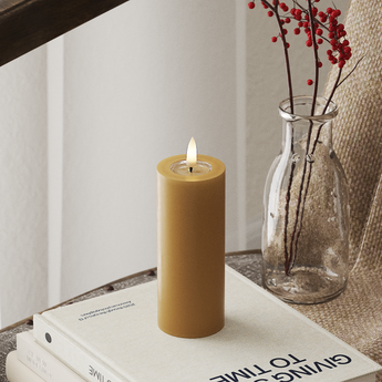 Produktet kan findes i: API dell'impiegato, Autunno, Candela a pilastro - Tutto, Curry, GUIDATO Candela a pilastro, GUIDATO Candela a pilastro Ø 5 x 12,5 cm, Luce indoor a LED, Stagioni, Tutto