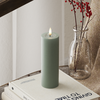Produktet kan findes i: API dell'impiegato, Candela a pilastro - Tutto, GUIDATO Candela a pilastro, GUIDATO Candela a pilastro Ø 5 x 15 cm, Luce indoor a LED, Stagioni, Tutto, Verde salvia