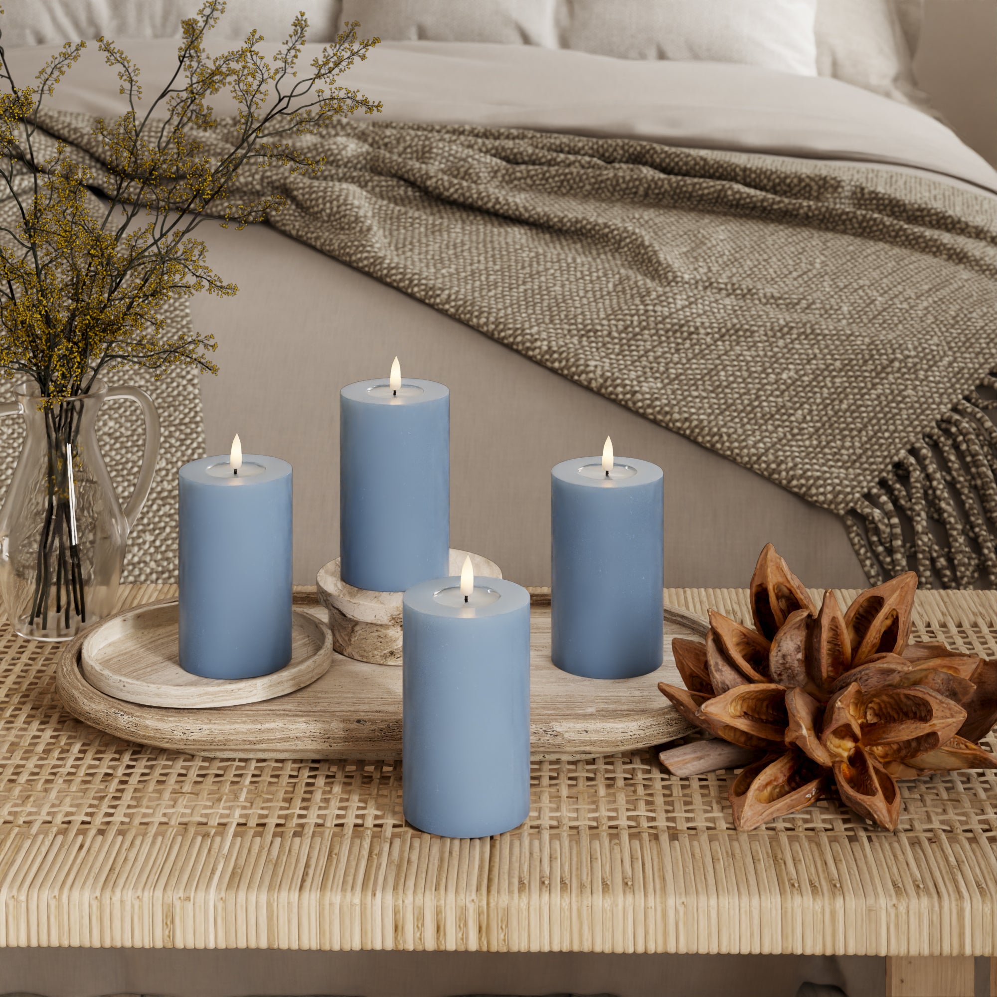 LED blokų žibintai Ø 7,5 x 12,5 cm Ledinis mėlyna - 4 vnt