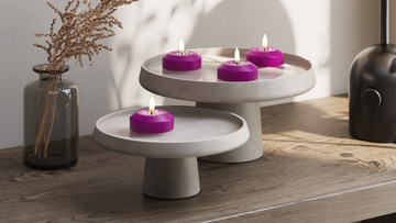 Tillverkad i resin-top (wetlook) och slitstark plast. Varje ljus mäter Ø 6,1 x 4,0 cm.